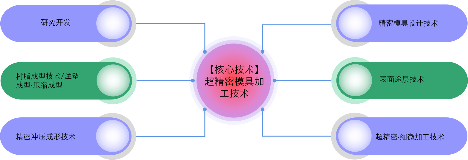 研究开发 为了进一步提升长年积累的模具制造与树脂成型技术,本公司致力于研究与开发新材料、树脂成型技术与细微加工。这些方面的研发成果,不仅有力推动了本公司主力事业的发展,同时广泛应用于光学、医疗、生物化学等其他领域。
